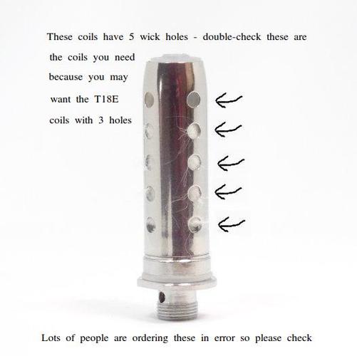 If you're using a T18 or T18E Prism tank, be very careful to ensure you choose the right coil. The T18 has 5 holes and it's longer, the T18E has 3 holes and it's shorter.