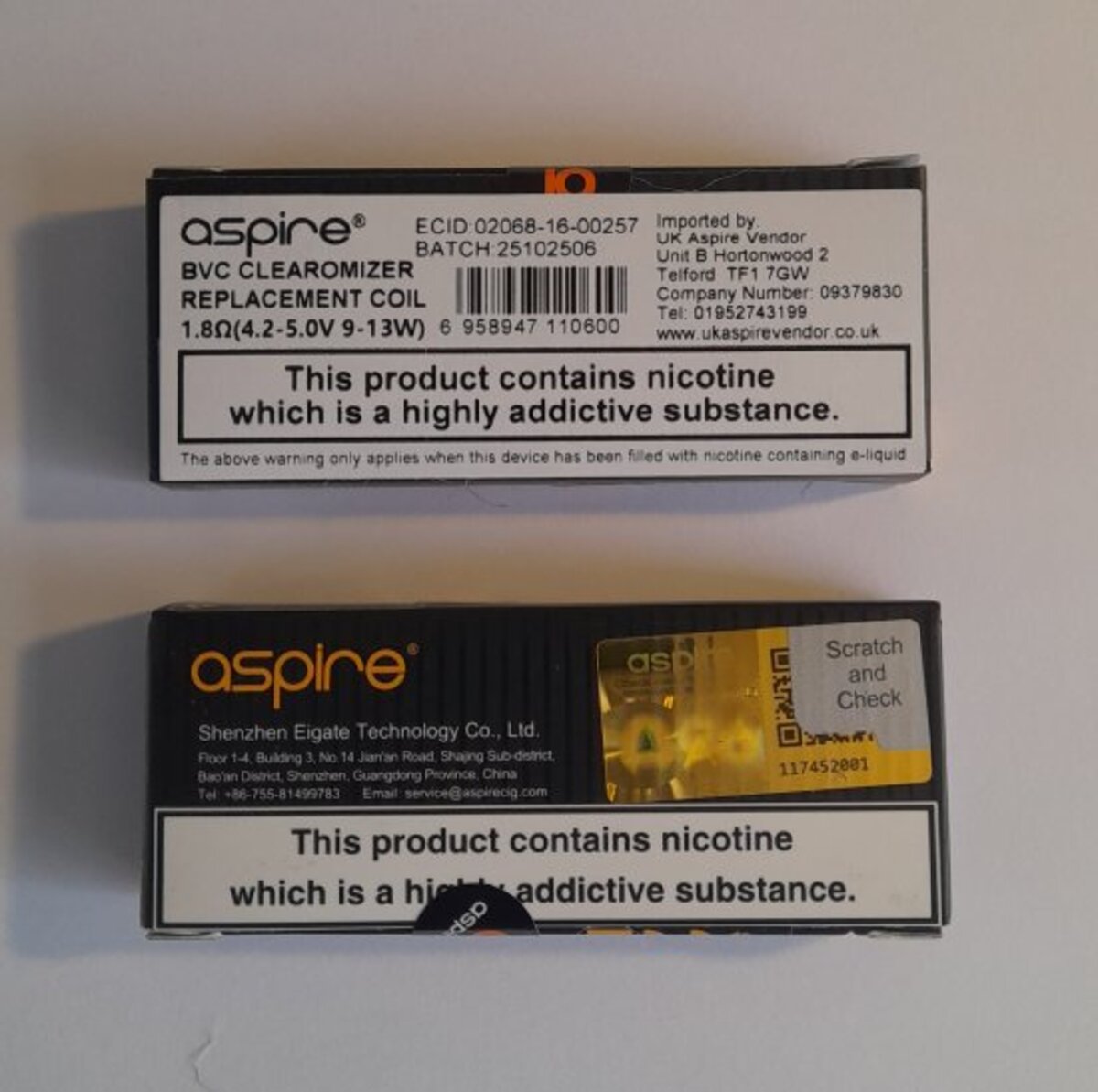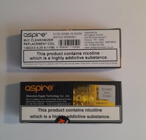 Pack of 5 genuine replacement Aspire BVC coils 1.8Ω Ohm.