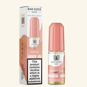 Peach Ice 10ml nicotine salts vape e-liquid from Elfliq (a brand very well known for their Elf Bar disposable product).